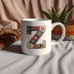 Z Harfi Yılbaşı Temalı Kupa Bardak - Yeni Yıl Konsept Yamalı Efekt Tasarım - Noel Hediye Beyaz