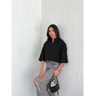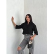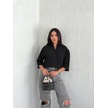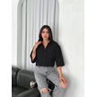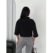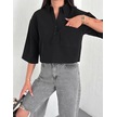 Z Krep Kadın Crop Yakalı Gömlek İlik Düğmeli Üç Çeyrek Sleeve Kol - Siyah Siyah