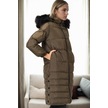 Düğmeli Cepli Kadın Peluş Kaban Haki