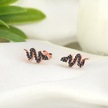 Zanaat Silver 925 Ayar Gümüş Siyah Taşlı Mat Rose Yılan Modeli Küpe