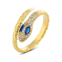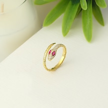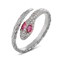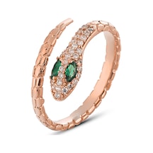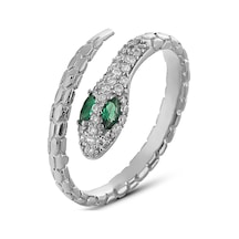 Zanaatsilver 925 Ayar Gümüş Yeşil Gözlü Yılan Modeli Yüzük