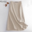 Zanzea Bayan Yaz Casual Yan Fermuarlı Pamuk Keten Etekler Kahverengi