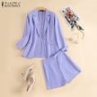 Zanzea İş Kıyafetleri Kadın Hırka Ve Şort Günlük İki Parçalı Takım Elbise Lacivert