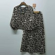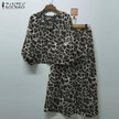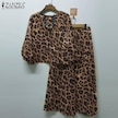 Zanzea Kadın Bluz Ve Pantolon Günlük Leopar Baskılı İki Parça Takım Elbise Gri