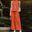 Zanzea Kadın Çiçek Baskı Tankı Üstleri Ve Pantolon Yaz Rahat Iki Parçalı Takım Elbise Seti Turuncu