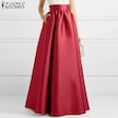 Zanzea Kadın Moda Yüksek Bel A-line Saten Etekler Düz Renk Parti Uzun Etekler Şarap Kırmızısı Kırmızı