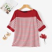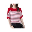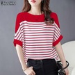 Zanzea Kadın Rahat O-yaka Kısa Kollu Çizgili Bluz Kırmızı
