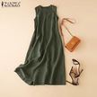 Zanzea Pamuk Elbise Kadın Yaz V Yaka Kolsuz Tank Elbise Haki