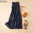 Zanzea Pamuk Elbise Kadın Yaz V Yaka Kolsuz Tank Elbise Lacivert