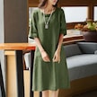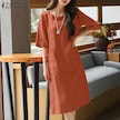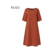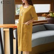 Zanzea Pamuk Keten Elbise Kadın Yaz Rahat O-boyun Yarım Kollu Elbise Haki