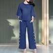 Zanzea Pamuklu Kıyafetler Bayan Bluz Ve Pantolon Yaz İki Parçalı Takım Elbise Set Mavi
