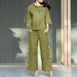 Zanzea Pamuklu Kıyafetler Bayan Bluz Ve Pantolon Yaz İki Parçalı Takım Elbise Set Yeşil