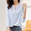 Zanzea Yaz Günlük V Yaka 3/4 Kollu Kadın Çizgili Bluz Açık Mavi