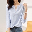 Zanzea Yaz Günlük V Yaka 3/4 Kollu Kadın Çizgili Bluz Koyu Mavi