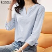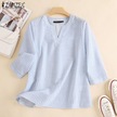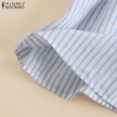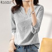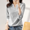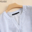 Zanzea Yaz Günlük V Yaka 3/4 Kollu Kadın Çizgili Bluz Siyah