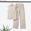 Zanzea Yaz Kıyafetleri Bayan Üstleri Ve Geniş Bacak Pantolon Rahat İki Parçalı Takım Elbise Seti Pembe