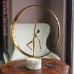 Zarif Altın Soyut Dans Eden Figür Heykeli Mermer Taban Üzerinde