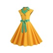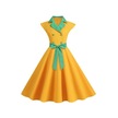 Zarif Bayan Elbise Nokta Baskılı Yaka Yaka Yay Üzerinde Bel Tatlı Tarzı Rahat Parti Elbise Kolsuz Sıkı Bel Ince Orta Uzunlukta Elbise Kadın Sarı