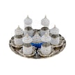Zarif İnci Ve Taşlı Çay Bardak Seti 6 Lı Ve Tepsili Lale Desenli -sade Beyaz
