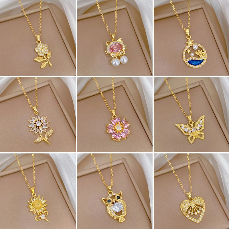 Forwhat Zarif Kadın İçin Golden Çelik Zincir Zirkonlu Yıldız Oval Kolye Metalik