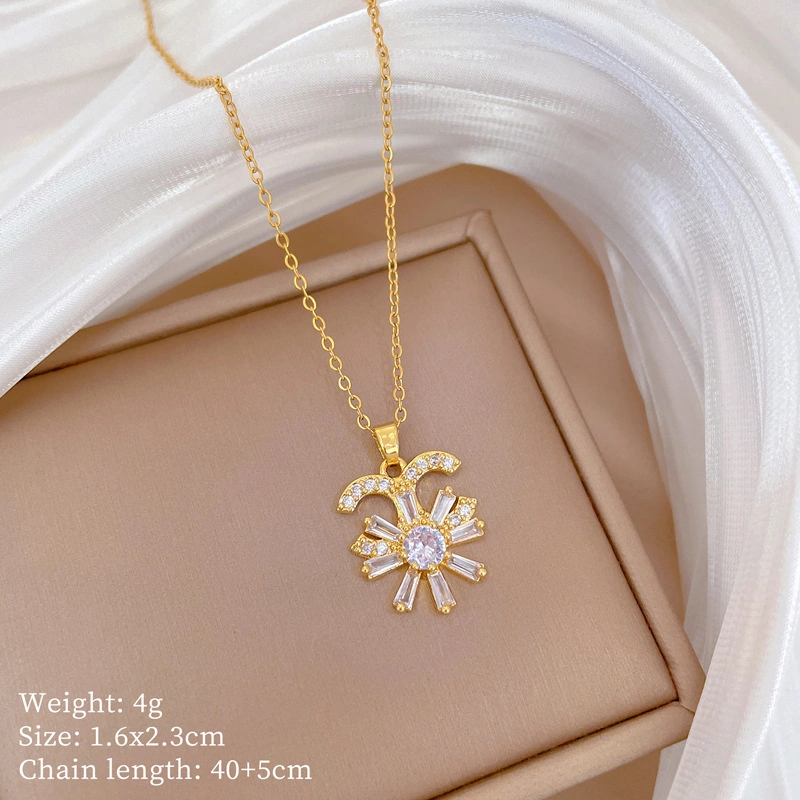 Kadın Çelik Kolye Zirkon Taş Yıldız Zincir Kalp Kararmaz Kolye Pembe