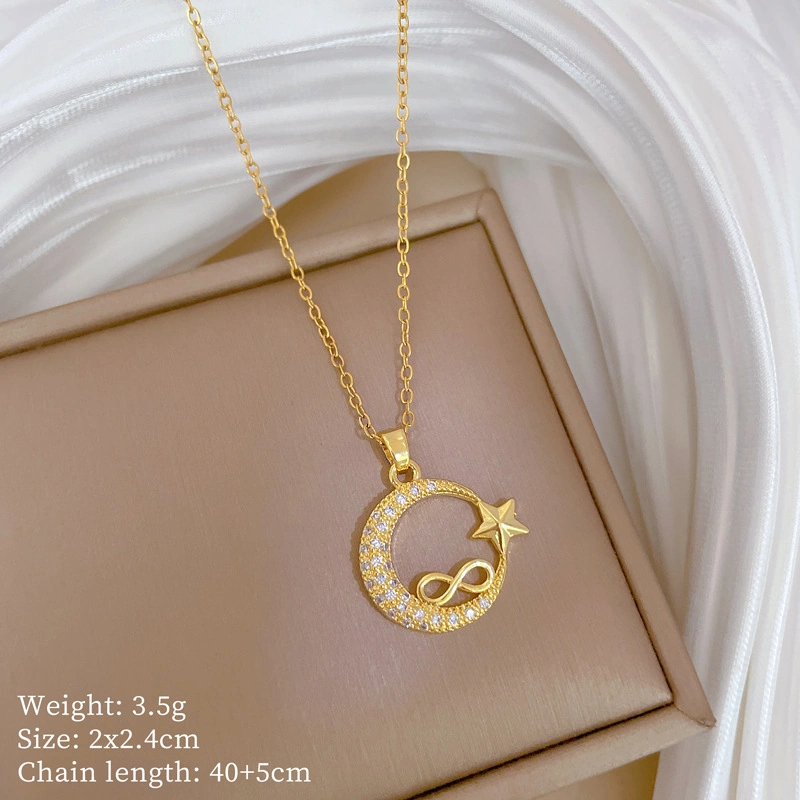 Kadın Çelik Kolye Zirkon Taş Yıldız Zincir Kalp Kararmaz Kolye Pembe