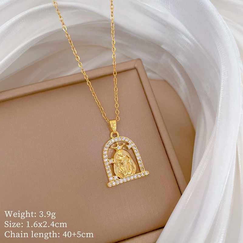 316l Çelik Gold Renk Zincir Beyaz Mineli Güneş İşlemeli Zirkon Taş Detaylı Madalyon Model Kadın Kolye Diğer