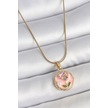 Zarif Kadın İçin Golden Çelik Zincir Pembe Mini Çiçek İnci Portre Kolye Metalik