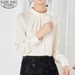 Zarif Ofis Kadın Çiçek Dekorasyon Saten Bluz Şifon Gömlek Kadın Üstleri Sonbahar Standı Yaka Uzun Kollu Elbise 23174 Kayısı Açık Bej