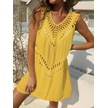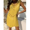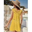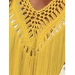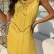 Zarif Tığ İşi Şık V Yaka Kolsuz Yarı Transparan Plaj Elbisesi Sarı