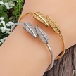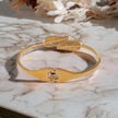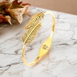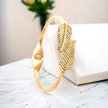 Zarif Yaprak Figürlü Gold Çelik Kelepçe Bileklik - Antialerjik Ve Kararmaz Altın