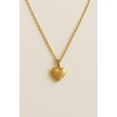 Çelik Top Zincirli Bombeli Taşlı Kalp Kolye