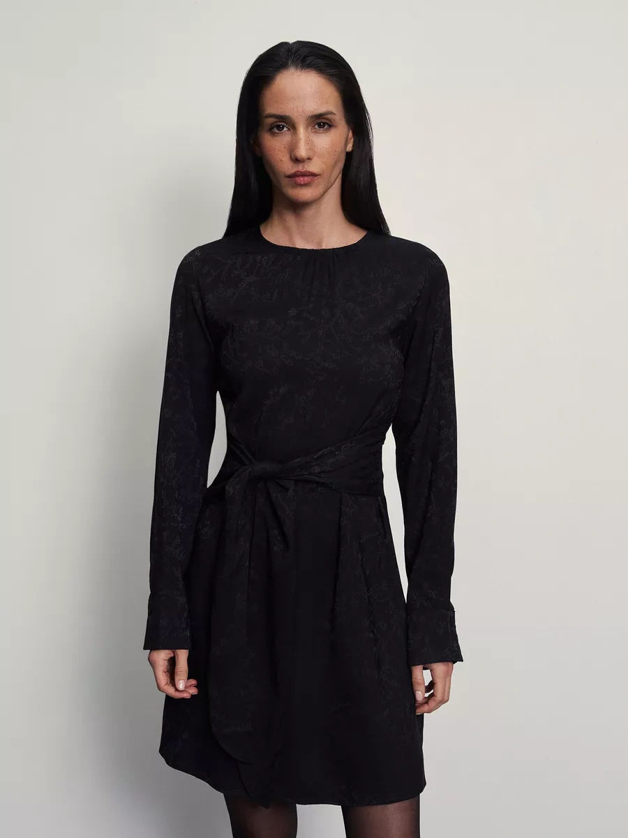 Zarına Bel Kemerli Baskılı Kısa Elbise 200754175 Siyah