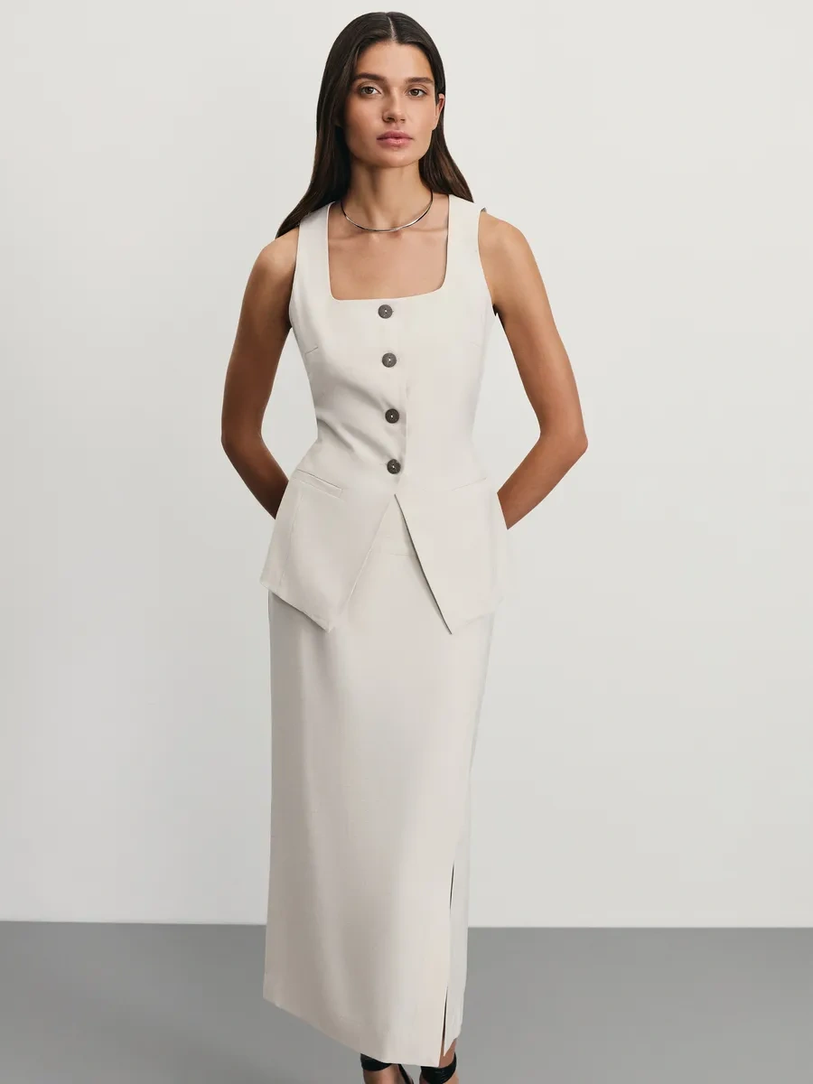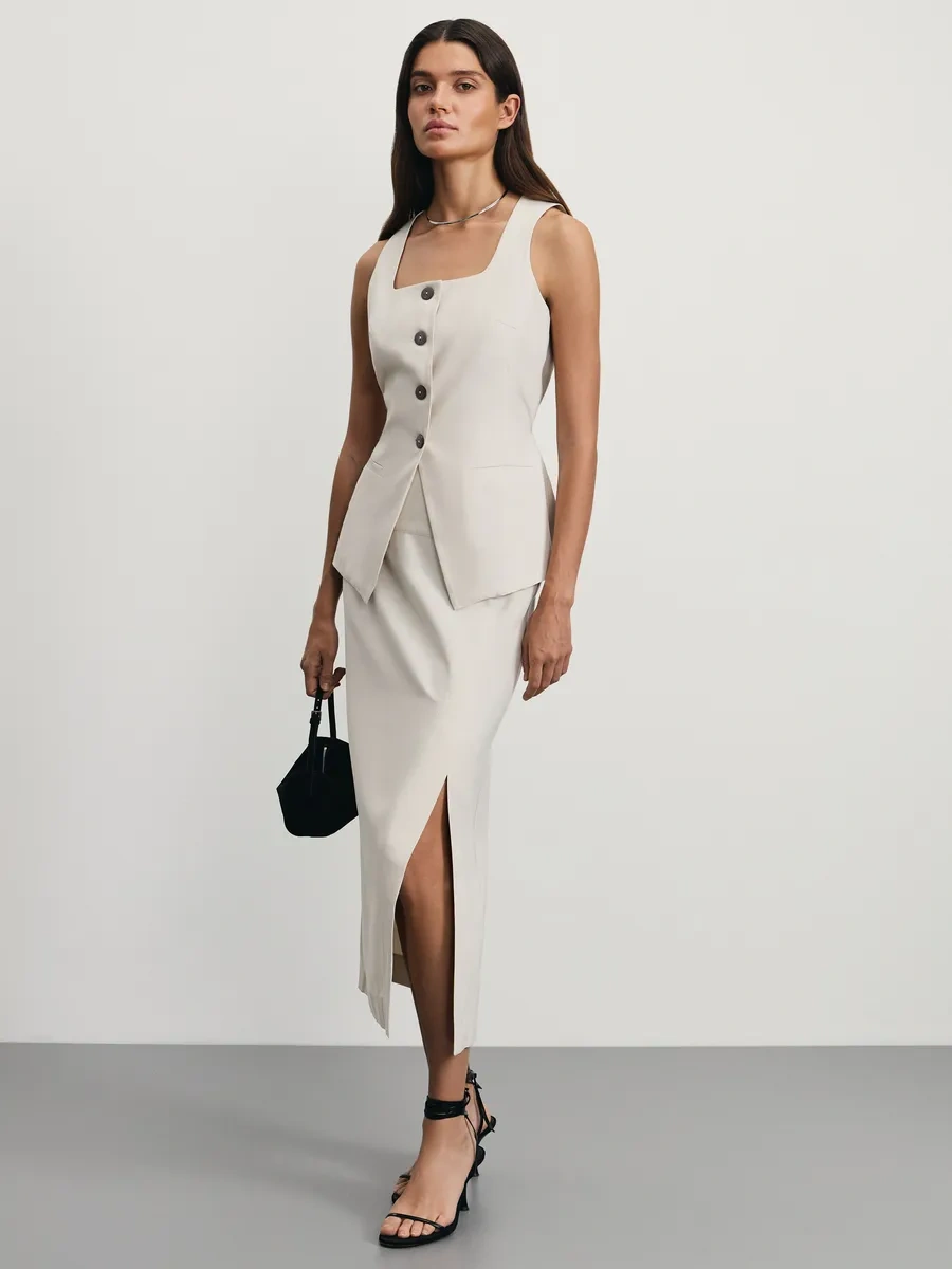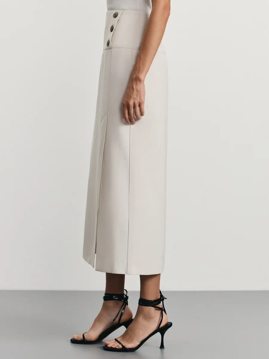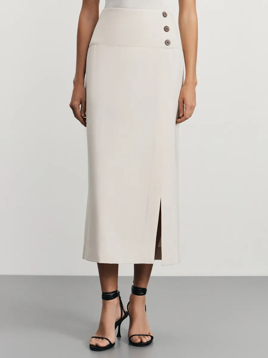 Zarına Dekoratif Düğmeli Kurşun Kalem Etek 432730006 Sütlü