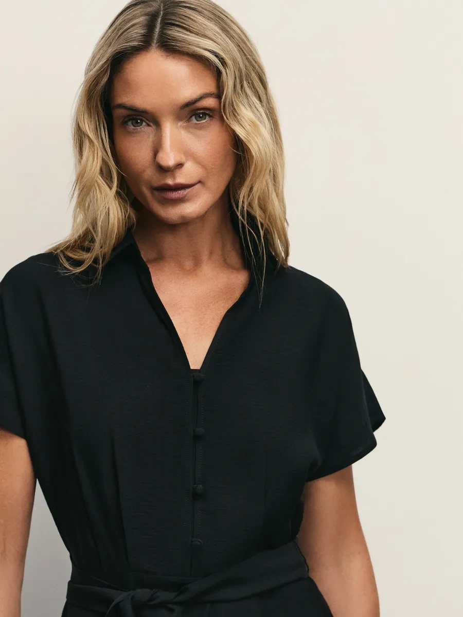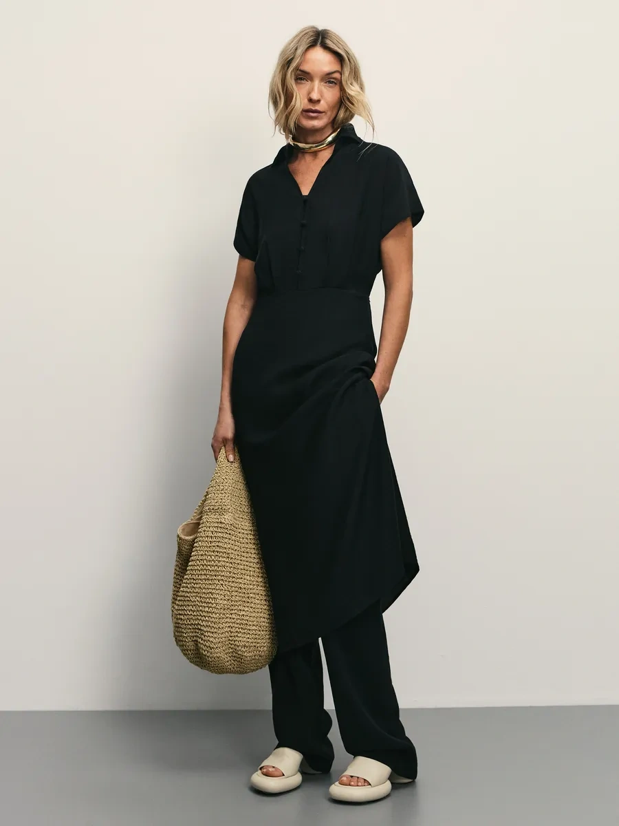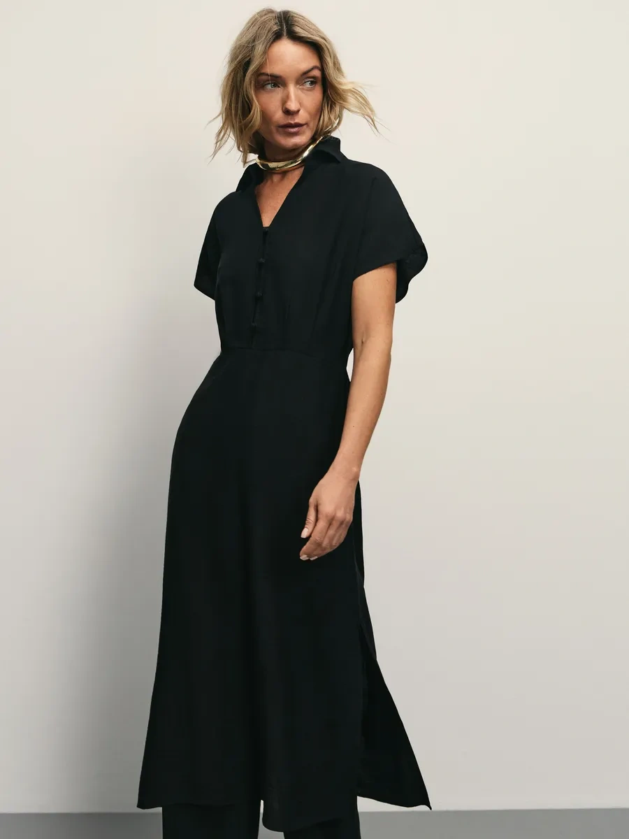 Zarına Gömlekli Yazlık Günlük Midi Elbise 371764807 Siyah
