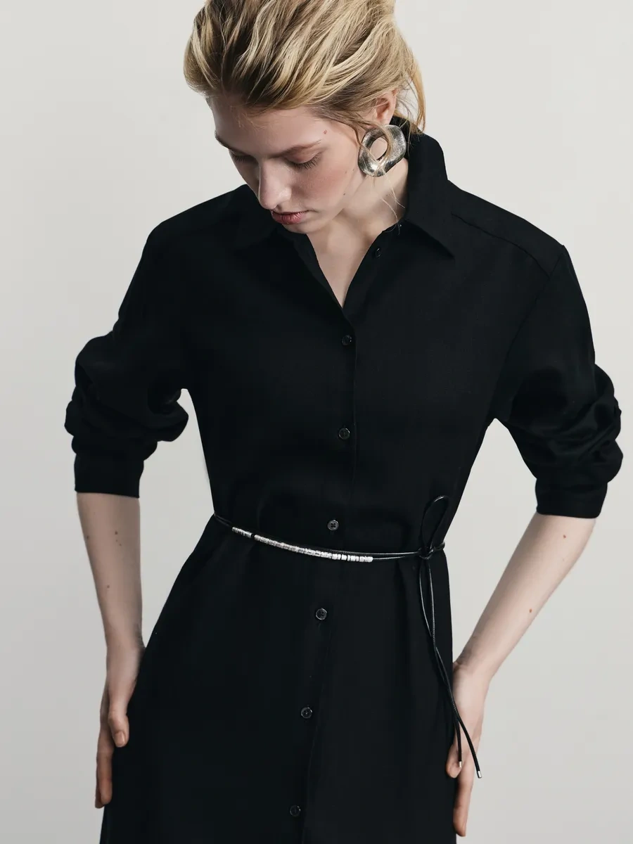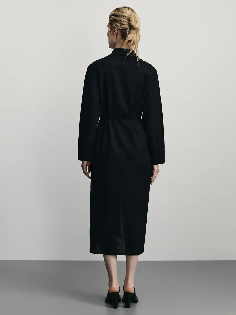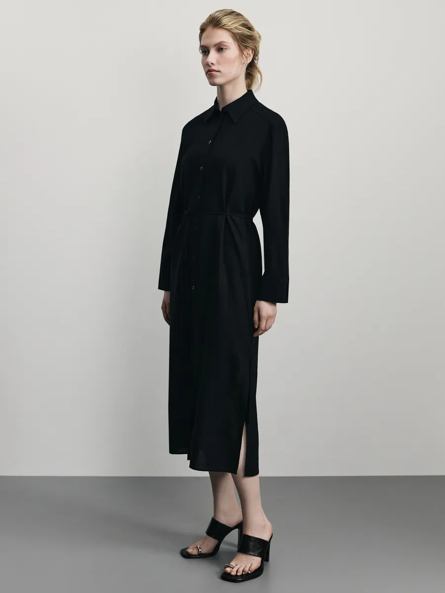 Zarına Günlük Temel Keten Gömlek Elbisesi 371892379 Siyah