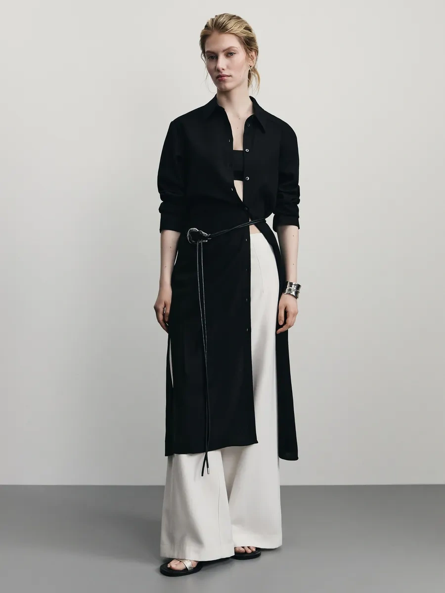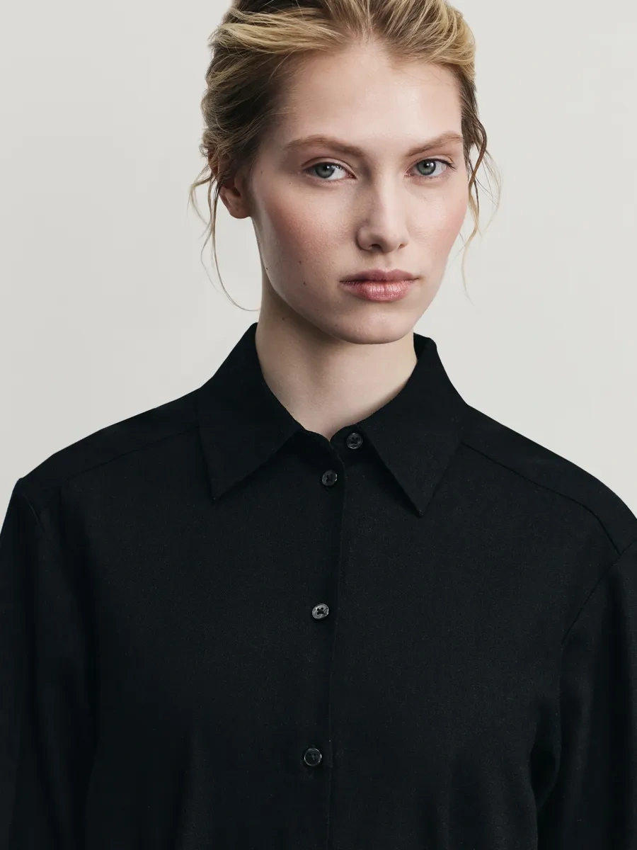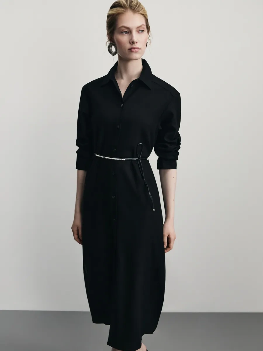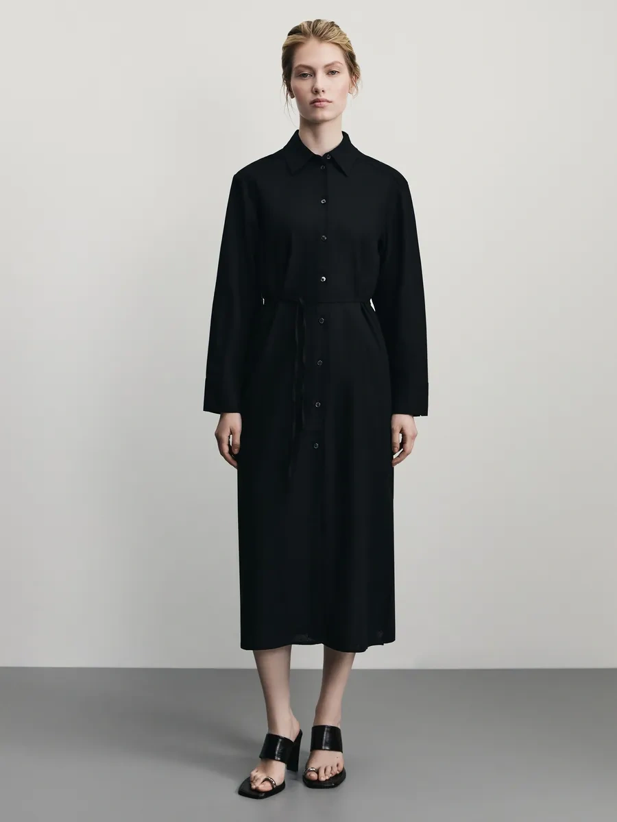 Zarına Günlük Temel Keten Gömlek Elbisesi 371892379 Siyah