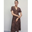 Zarına Kısa Kollu Midi Elbise, Çapraz Bağlamalı 218368967 Kahverengi