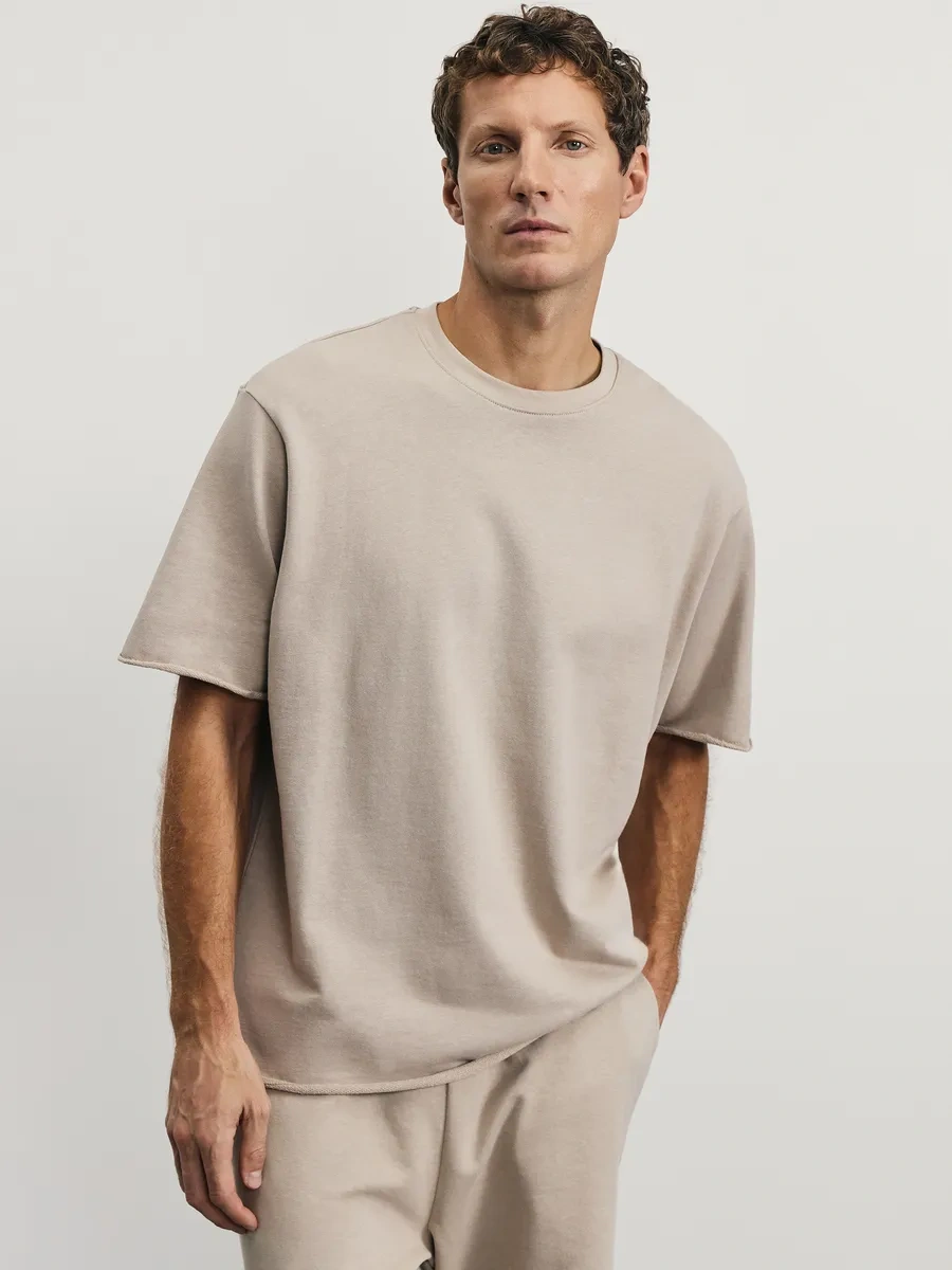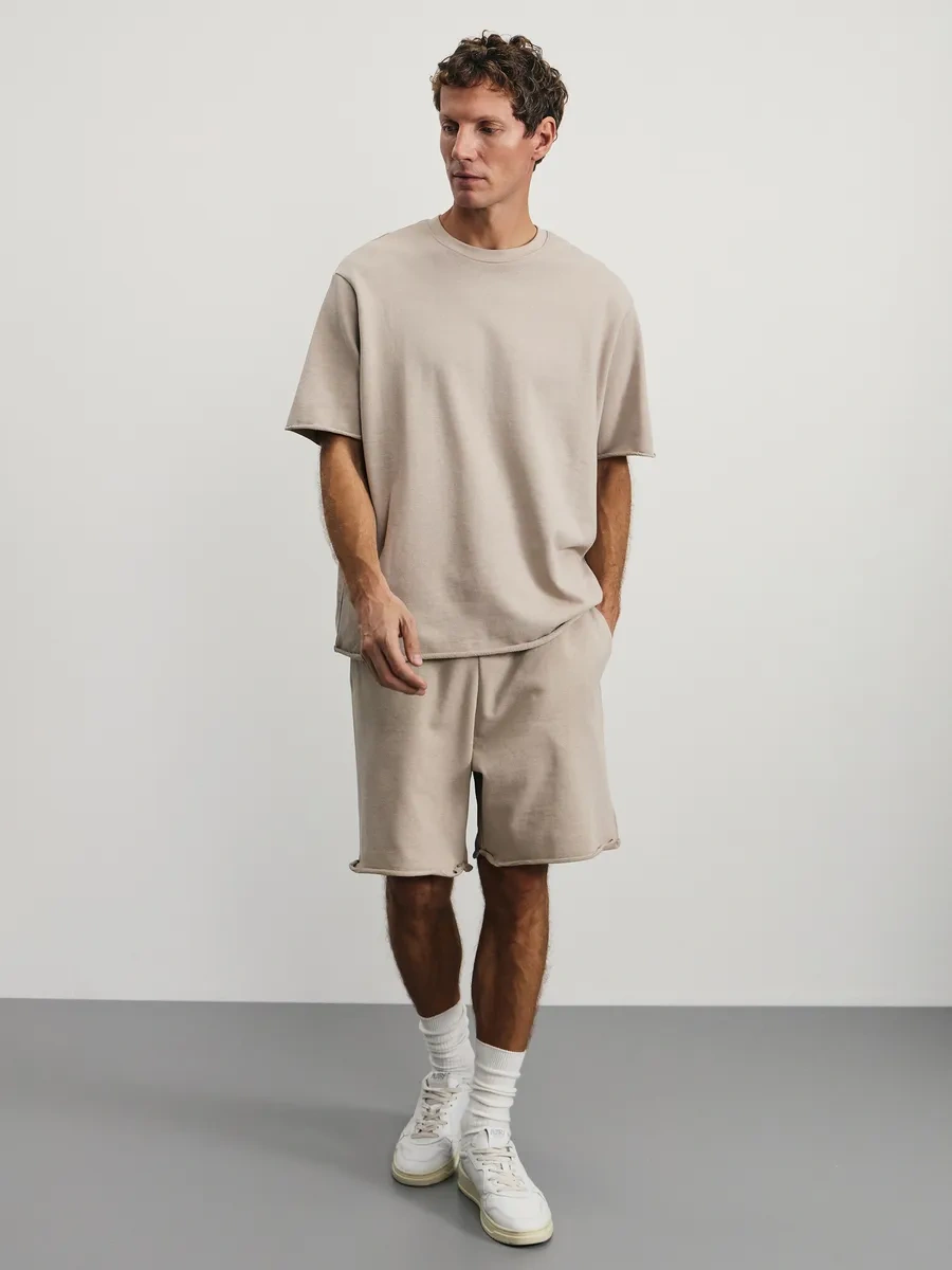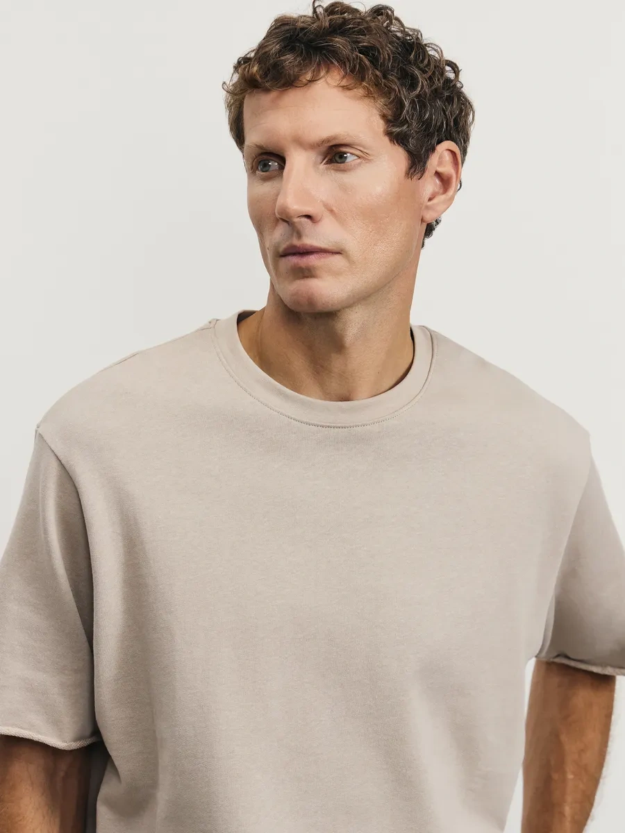 Zarına Oversize Koşu Tişörtü Pamuklu İşlenmemiş Kenarlı 444747135 Bej