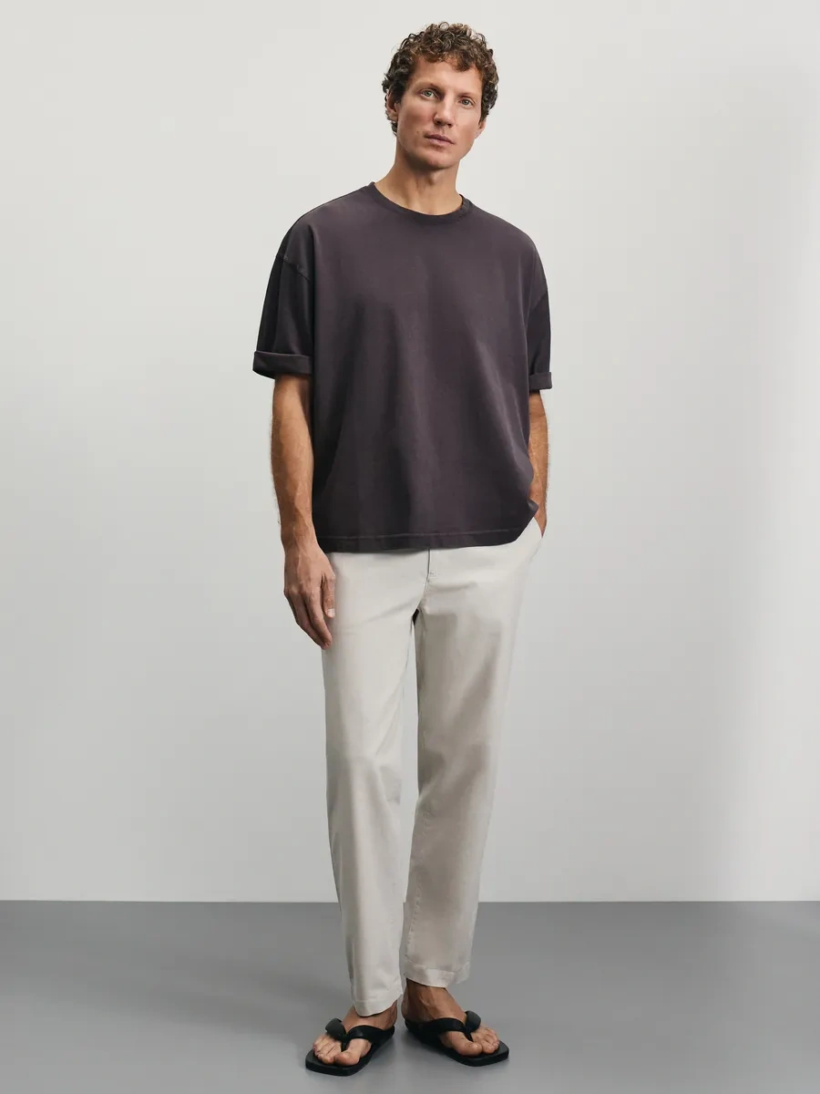 Zarına Oversize Yazlık Pamuklu Düz Renkli Tişört 430281108 Koyu Kahverengi
