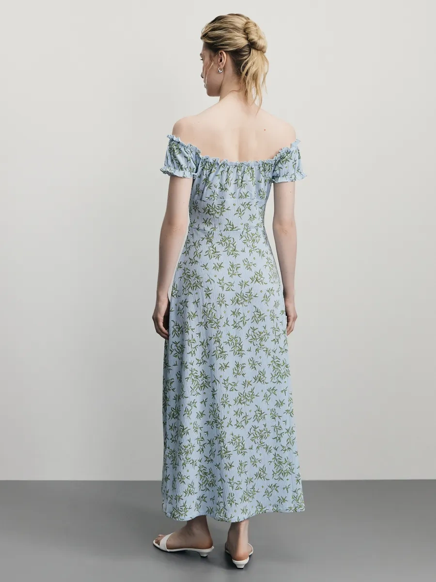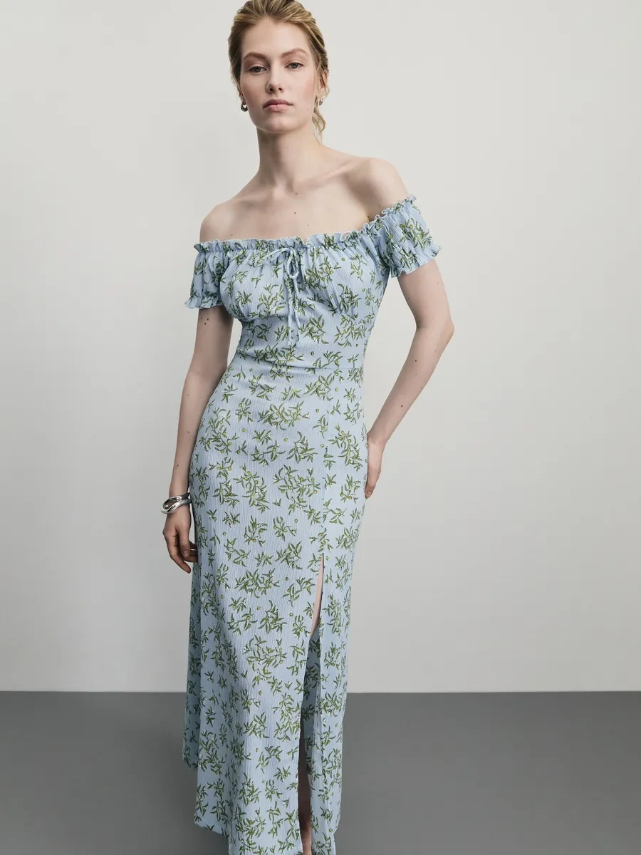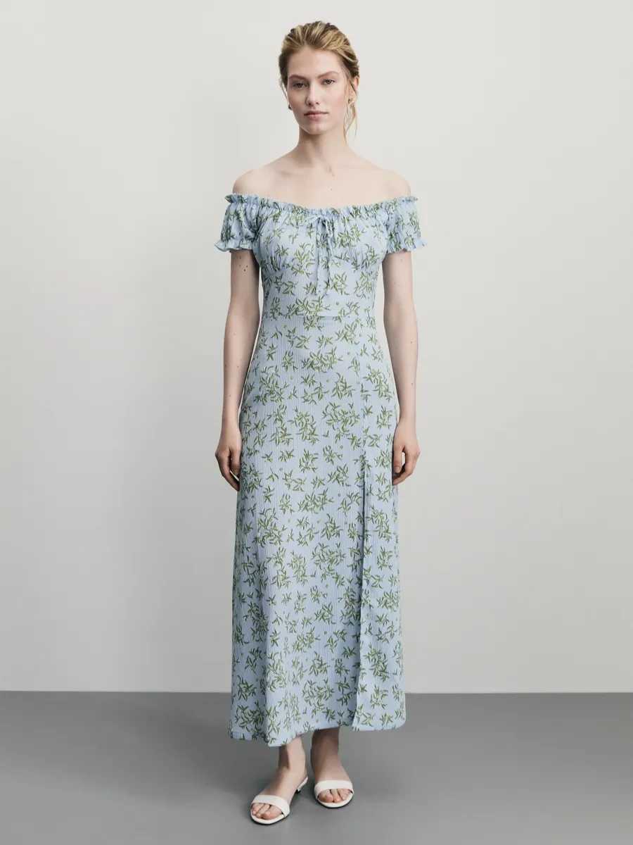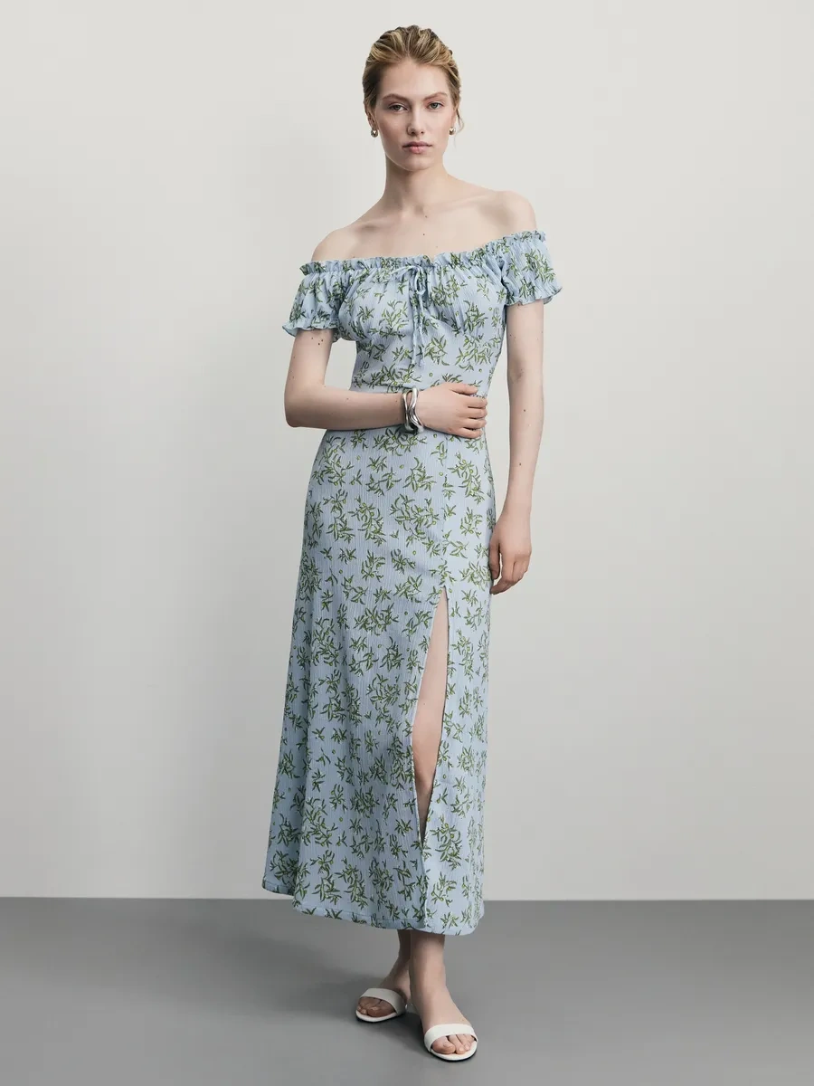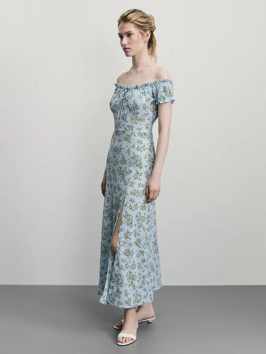 Zarına Uzun Yırtmaçlı Ve Kısa Kollu Elbise 371769342 Açık Mavi