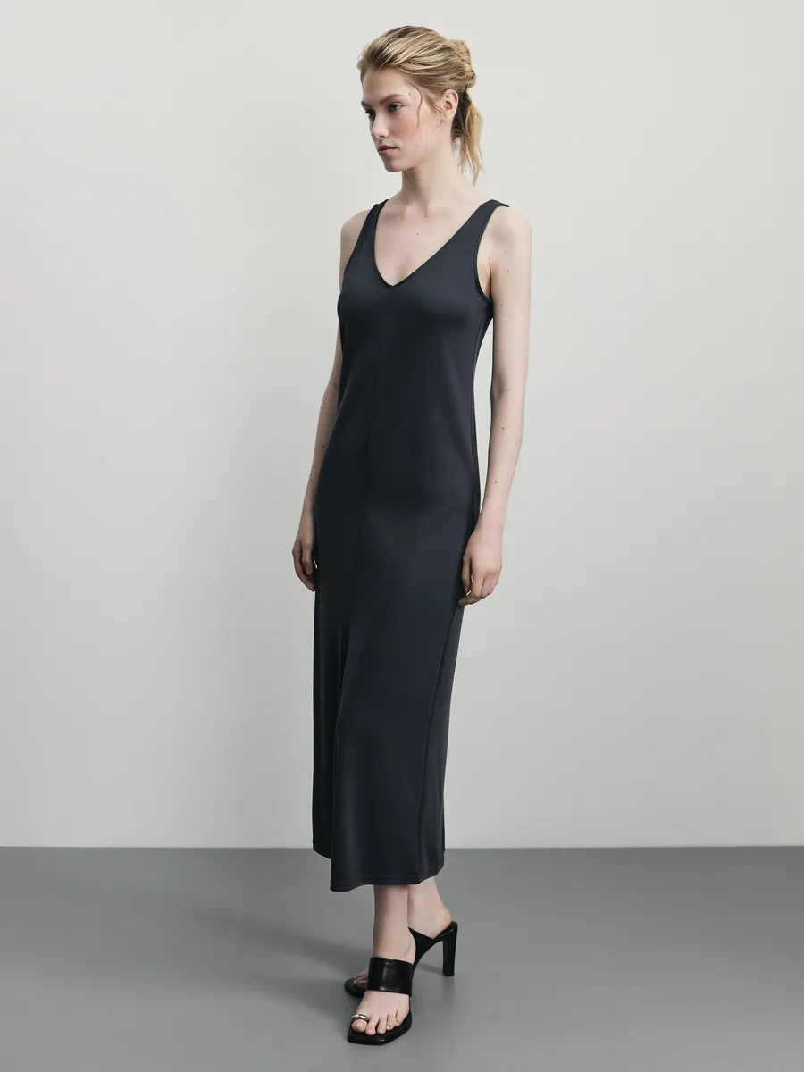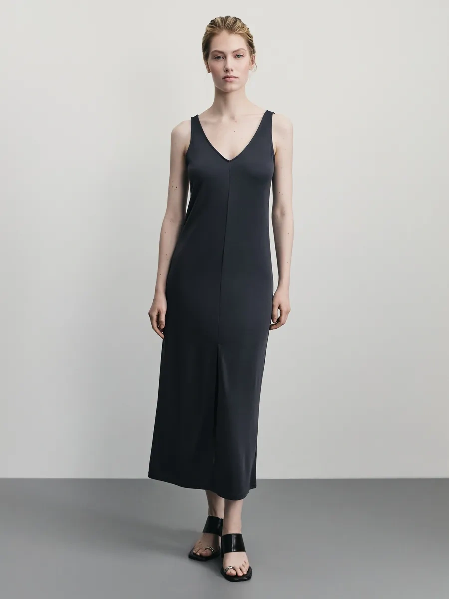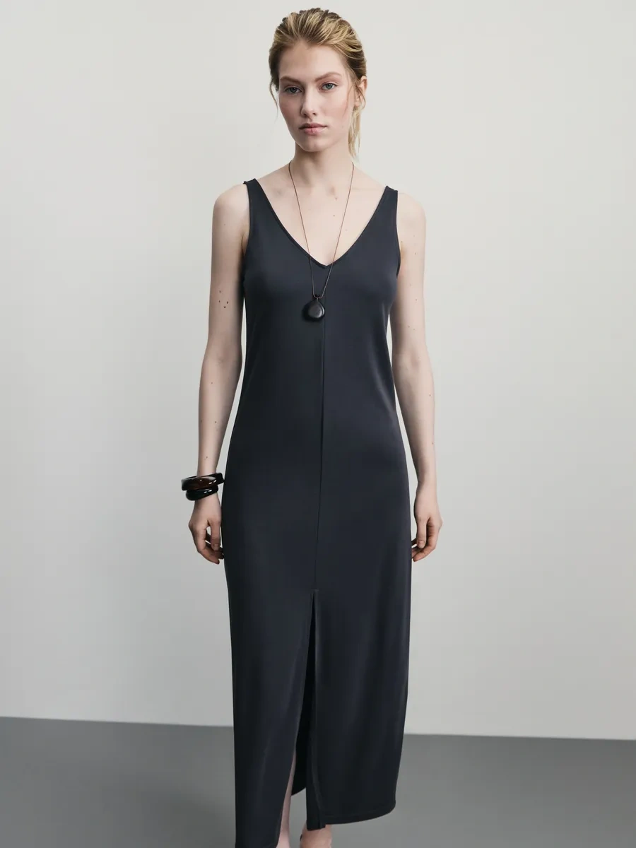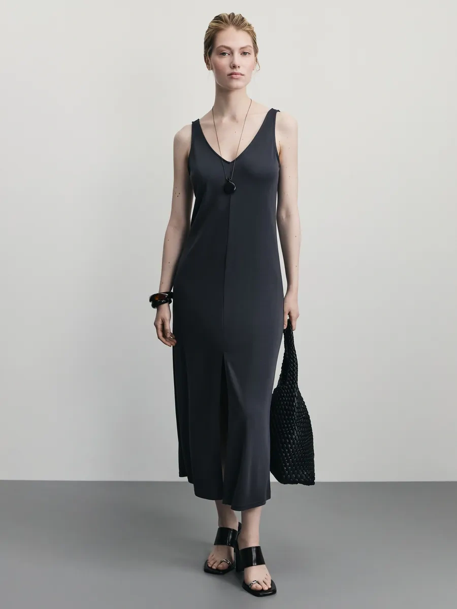 Zarına Yazlık Elbise Uzun Yırtmaçlı Süspanter 376500970 Antrasit-gri