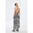 Zebra Desenli Sırt Dekolteli Şifon Elbise-zebra