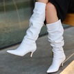 Zelya Beyaz Cilt Topuklu Çizme Beyaz