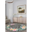 Zeminde Bir Bahçe Doğayla Geometrinin Buluştuğu Nokta Dekoratif Kaymaz Taban Yuvarlak Halı Siyah - Beyaz