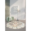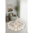 Zeminde Bir Dönüş Yuvarlak Medalyonlu Halı Tasarımı - Kaymaz Taban Krem