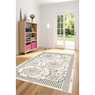 Zeminde Çizgisel Bahar Siyah Beyaz Çiçekli Kaymaz Taban Halı Siyah - Beyaz