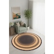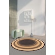 Zeminde Sıcaklık Örgü Desen Görünümlü Yuvarlak Kaymaz Taban Halı Bej - Kahve