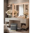 Zengo Gold Twin Line Kare Puf -gri Kumaş, Dekoratif Makyaj Masası Pufu-modern Style