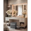 Zengo Silver Twin Line Kare Puf -gri Kumaş, Dekoratif Makyaj Masası Pufu-modern Style